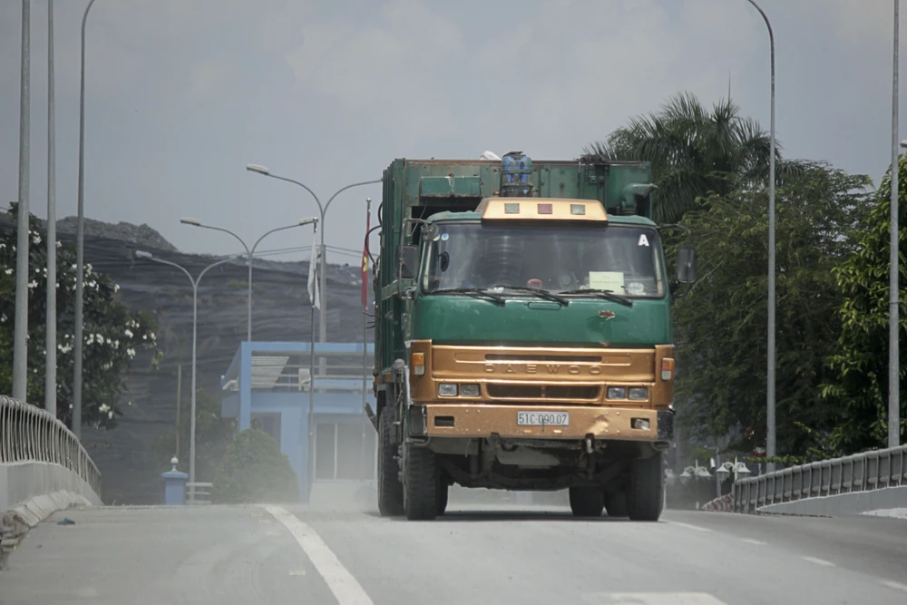 Xe chở rác về khu vực bãi rác Đa Phước. Ảnh: Trung Thanh