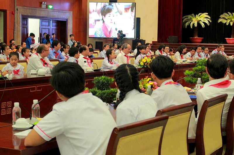 Trong các lần gặp gỡ trước, các cô chú lãnh đạo TP đã lắng nghe ý kiến, tâm tư, nguyện vọng, đề xuất của các em. Những ý kiến, những quan tâm của các em cho sự phát triển của TP, của ngành giáo dục, cho nhà trường, gia đình và bạn bè… tuy giản dị nhưng xác với thực tiễn diễn ra hàng ngày. Thể hiện óc quan sát có trách nhiệm, giàu lòng nhân ái. Mỗi vẫn đề em đặt ra chan chứa tình yêu thương giữa con người với con người, cho thấy sự trưởng thành của các em.