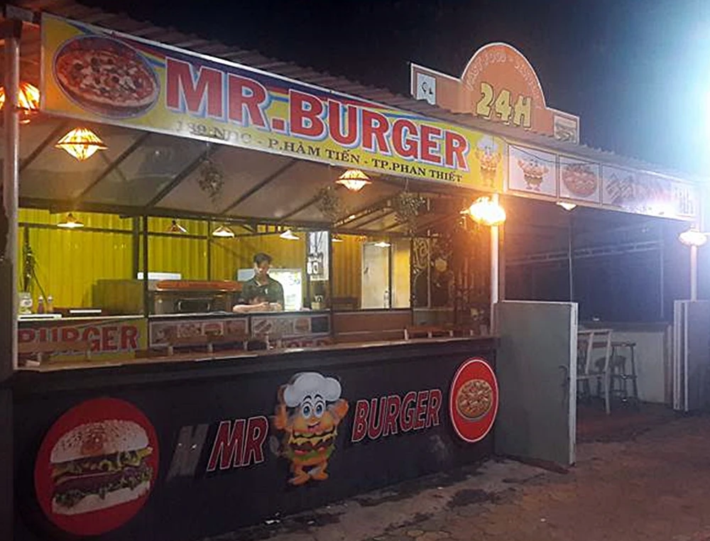 Gọi là quán Mr. Burger cho oai chứ thật sự đó chỉ là quầy bánh nhỏ. Huynh vừa là chủ quán vừa là đầu bếp tự tay chế biến, nướng thịt kẹp vào bánh và phục vụ tận bàn cho các du khách.