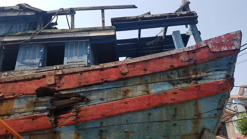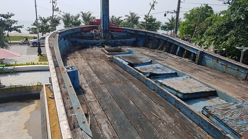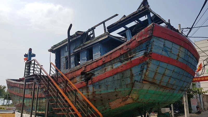 Tàu ĐNa 90152 TS bắt đầu được trưng bày từ tháng 5-2019, tròn năm năm sau ngày bị tàu Trung Quốc đâm chìm. Ảnh: TẤN VIỆT
