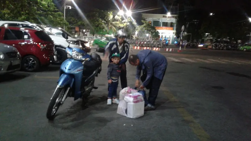 Và cả những người trở lại TP.HCM sau những ngày về quê đón Tết. Cậu bé vui mừng ôm chầm lấy mẹ ngày đón mẹ và em gái trở về.