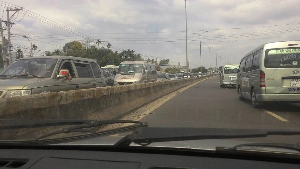 Trên cao tốc Long Thành lượng xe cũng đông hơn nhiều so với ngày thường. "Từ cao tốc Long Thành chuẩn bị rẻ vào quốc lộ 51 đã bị xếp hàng chờ hàng trăm mét. Tưởng rằng chỉ một đoạn ngắn nhưng chúng tôi chôn chân hơn 1 giờ cho khoảng 5km trên tuyến quốc lộ 51. Gia đình tôi phải từ bỏ ý định đi tiếp và vòng xe trở lại về nhà. Rất nhiều xe cũng phải quay lại " - ông Huân thông tin.