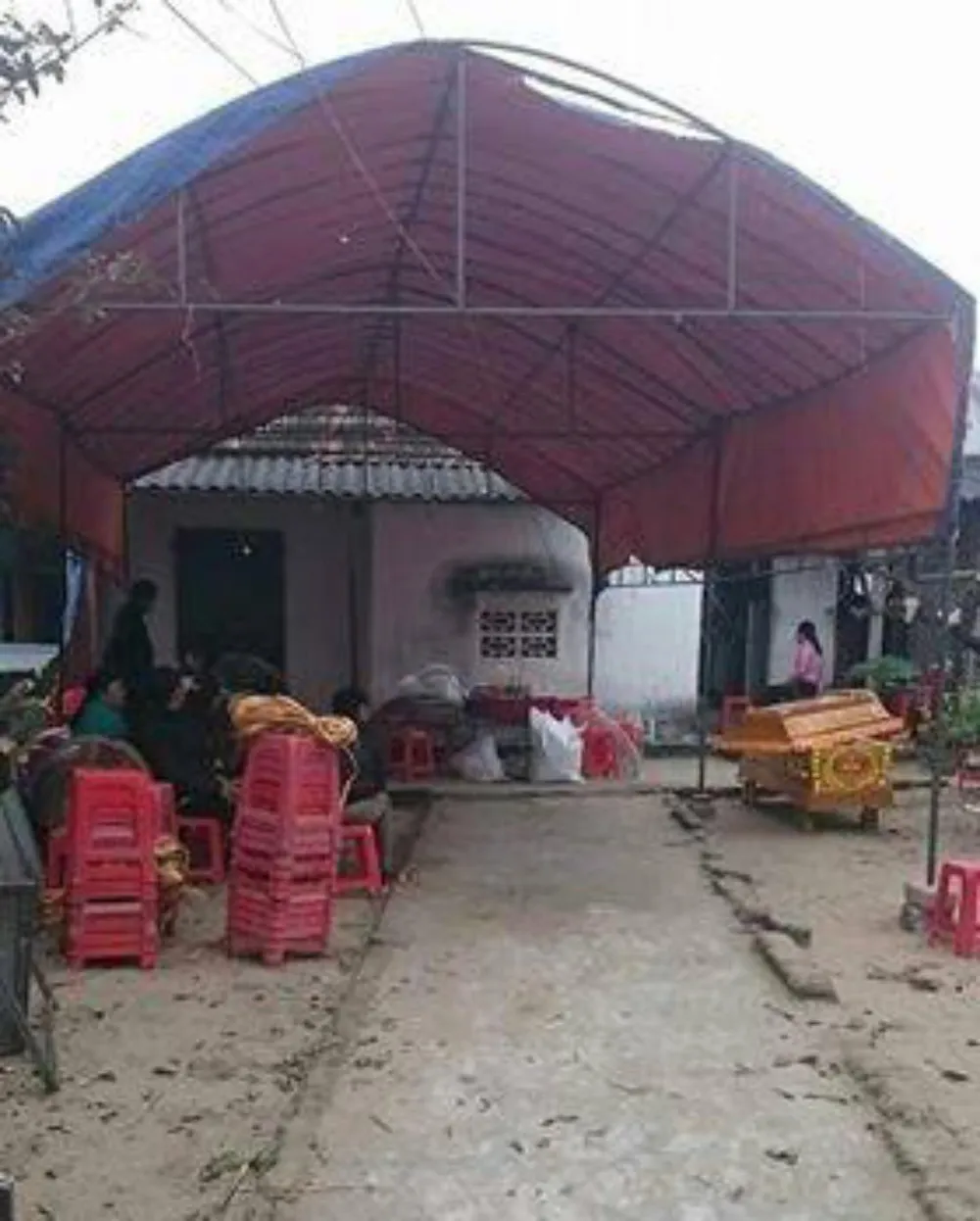 Người nhà lo làm đám ma cho ông Cương.