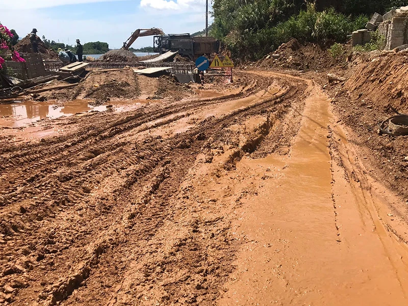 Mỗi khi mưa lớn, một lượng đất đá từ trên công trình đang thi công bị sạt lở và trôi xuống khiến tuyến đường ĐT601 bị ách tắc giao thông nhiều lần. Thương nhất là mấy em học sinh đạp xe đi trên đường mà té lên, té xuống chẳng khác gì nông dân đi cày vì bùn lấm từ đầu đến chân.