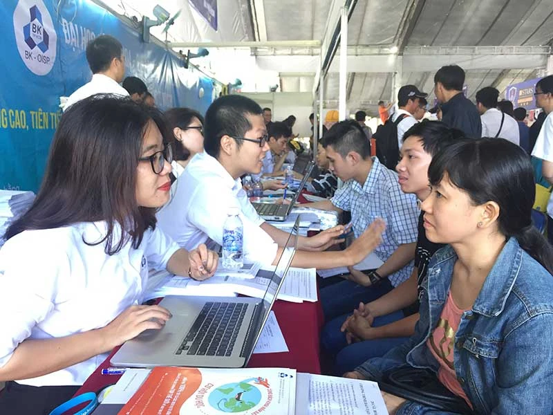 Thí sinh tham khảo thông tin tuyển sinh và chỉ tiêu vào các trường đại học năm 2017. Ảnh: P.ĐIỀN