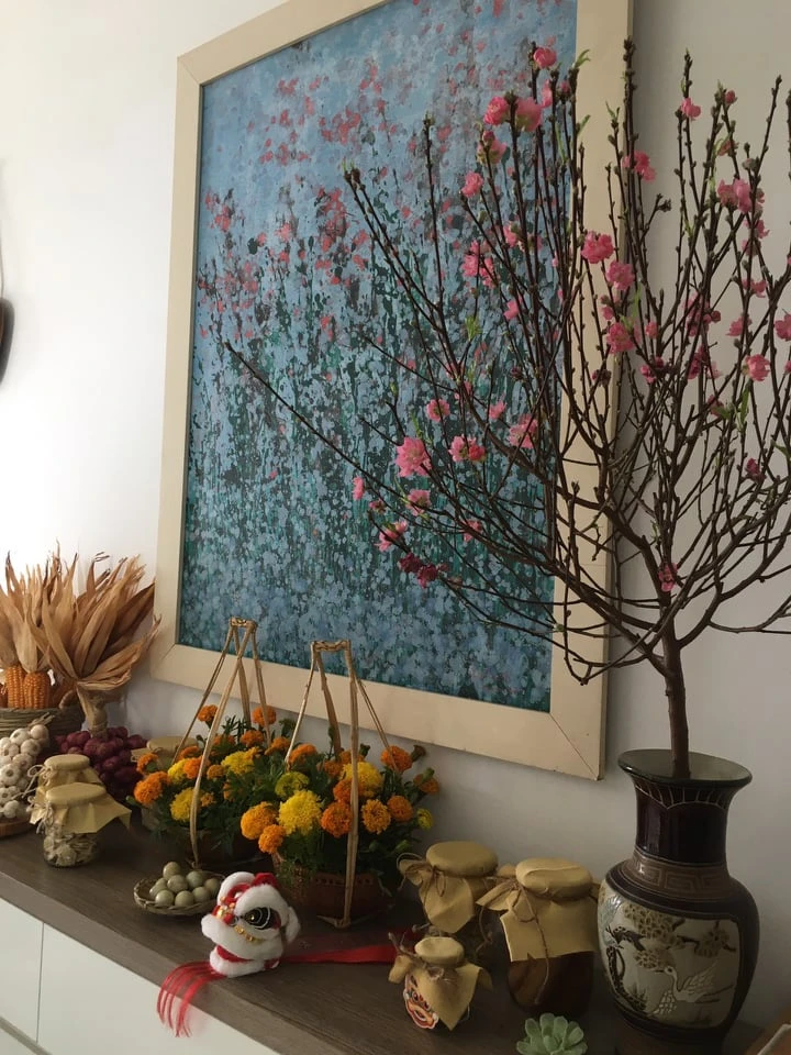 Góc trang trí Tết ở một chung cư quận 12. Ảnh: TU