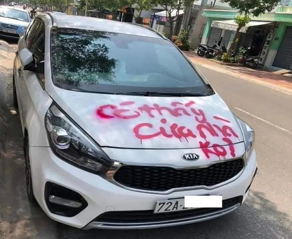 Nhiều chủ xe bị nhắc nhở bằng việc xịt sơn lên xe, nhưng ý thức đổ xe của nhiều tài xế vẫn không đổi. Ảnh: NTV