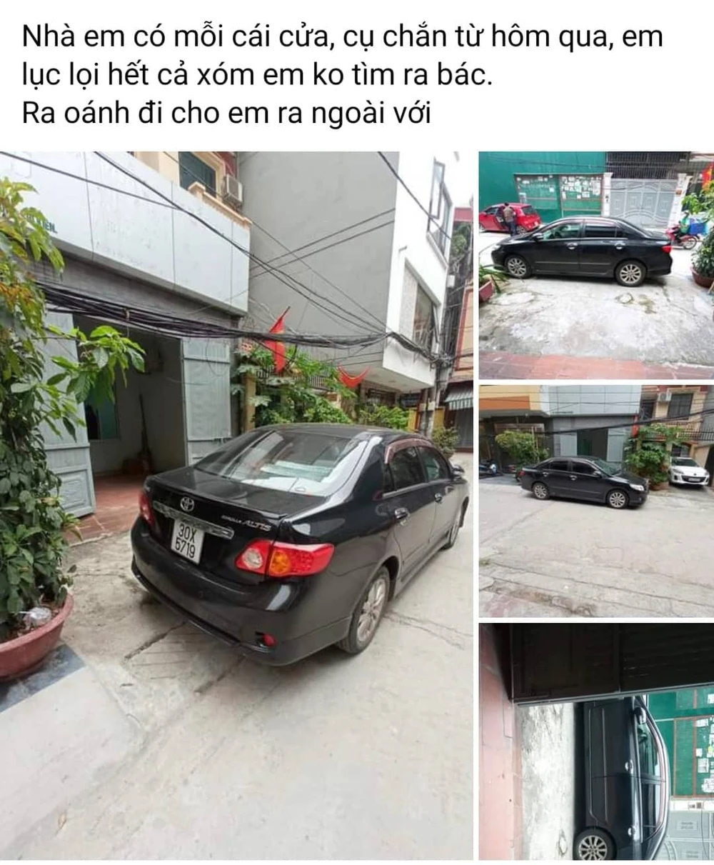 Chiếc Toyota Corolla Altis ngang nhiên đậu trước cửa nhà người khác khiến cho chủ xe không biết đi lại bằng cách nào. Ảnh: Pham Van Vuong