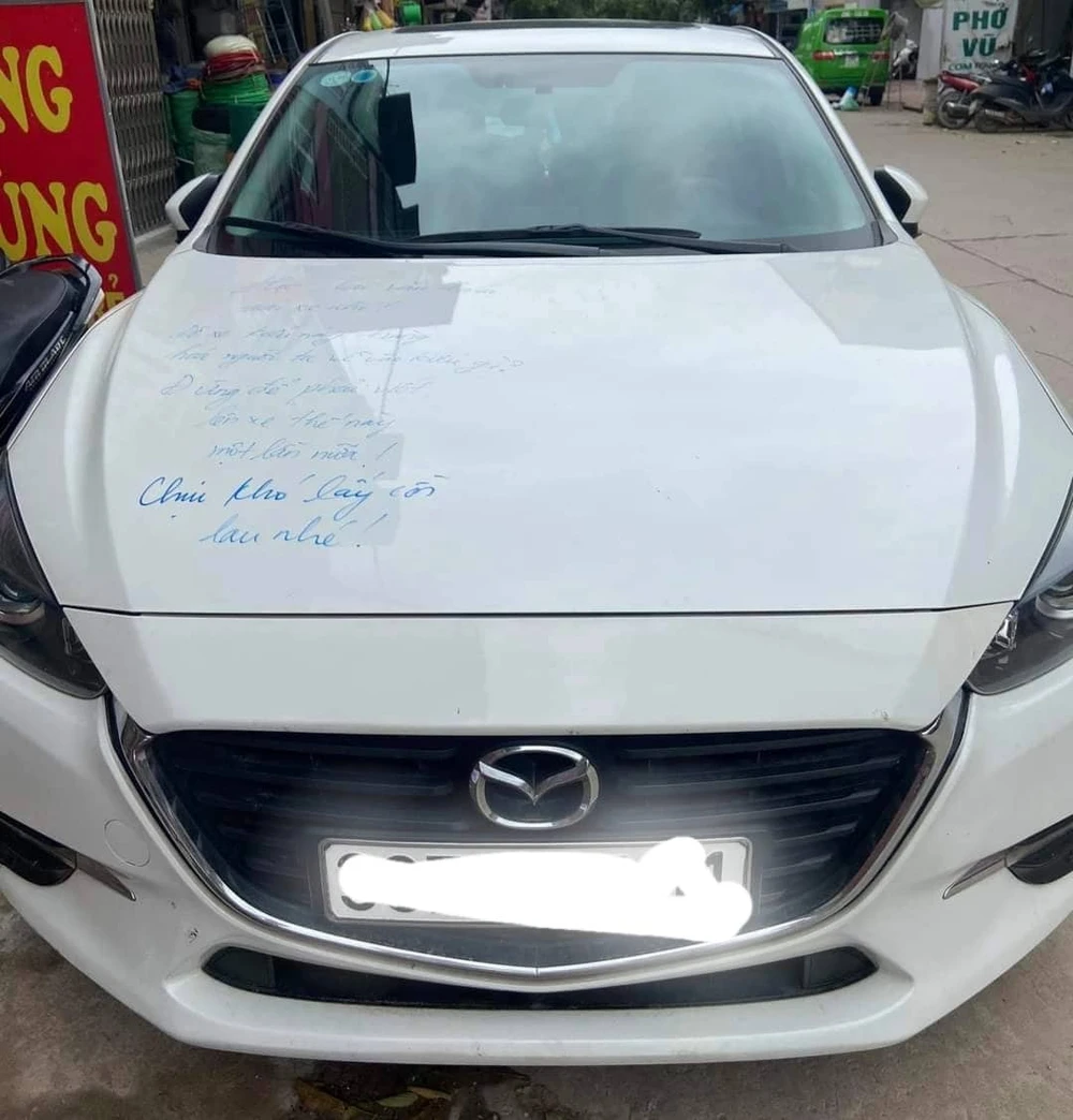 Chiếc Mazda đỗ ngay trước của hàng của một chủ nhà tại Hà Nội và bị chủ nhà nhắc nhở bằng việc viết chữ lên xe. Ảnh: Nguyen Thu Thuong
