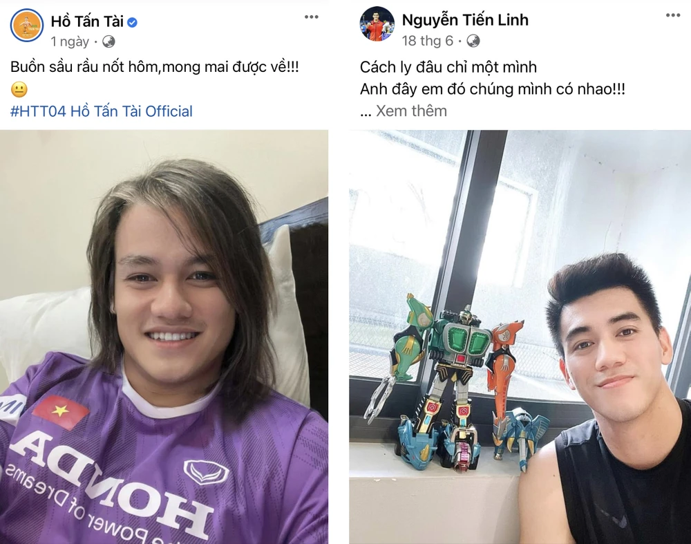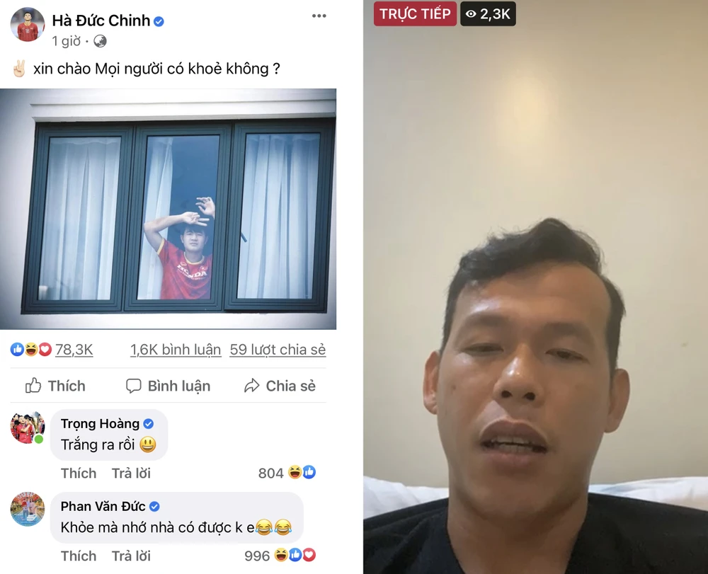 Tuyển thủ Hà Đức Chinh đăng tút trông ngóng ngày về trong khi thủ môn Tấn Trường tranh thủ livestream chuyện trò với fan.