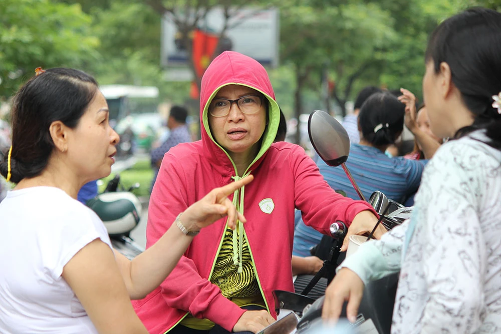 Những bà mẹ cùng trò chuyện trong suốt thời gian chờ con thi.
