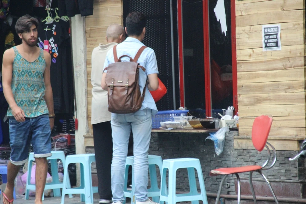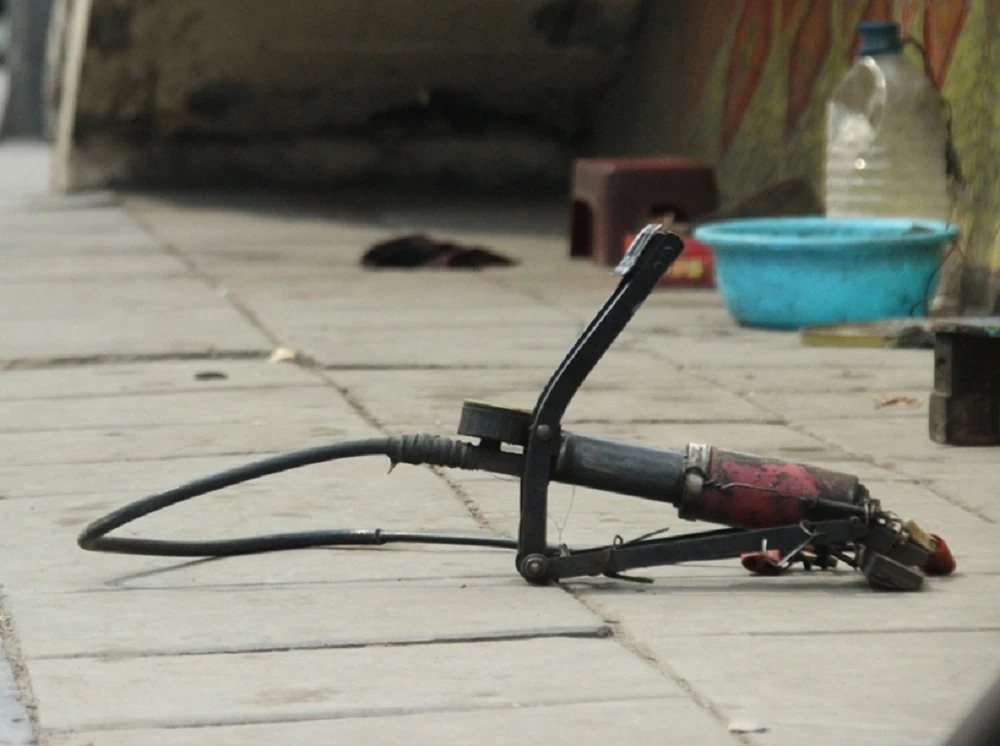 Để khách có thể dễ dàng nhận ra, ông đặt chiếc bơm trên vỉa hè làm dấu hiệu. Những người có nhu cầu sửa chữa chỉ cần nhìn vào chiếc bơm này sẽ hiểu tại đây có dịch vụ họ cần.
