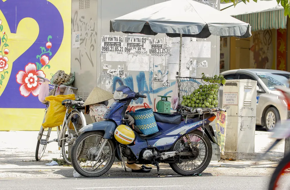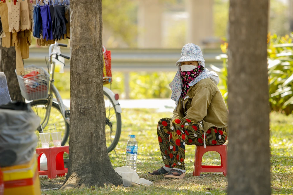 Tình hình nắng nóng cũng ảnh hưởng đến việc mua bán của một số người trên đường phố.