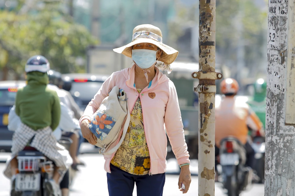 Từ hơn 10 sáng, người ra đường phải vận áo và khẩu trang kín đáo để đỡ sự oi nồng.