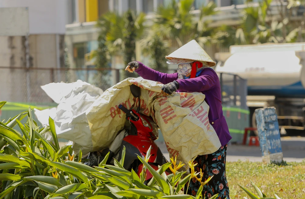 Người lao động tự trang bị nước uống để làm việc trong thời tiết nắng nóng.