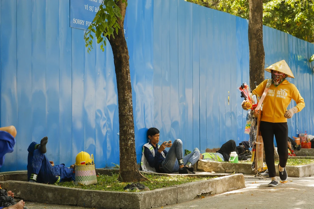Một số công nhân chọn công viên để nghỉ ngơi, thư giãn.
