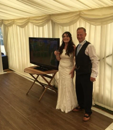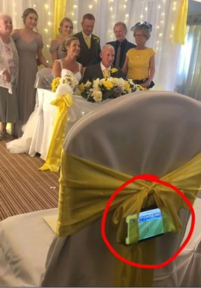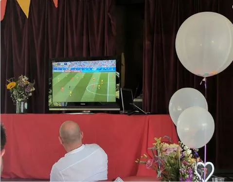 Một đám cưới được trang bị tivi trực tiếp các trận đấu. Ảnh: Twitter