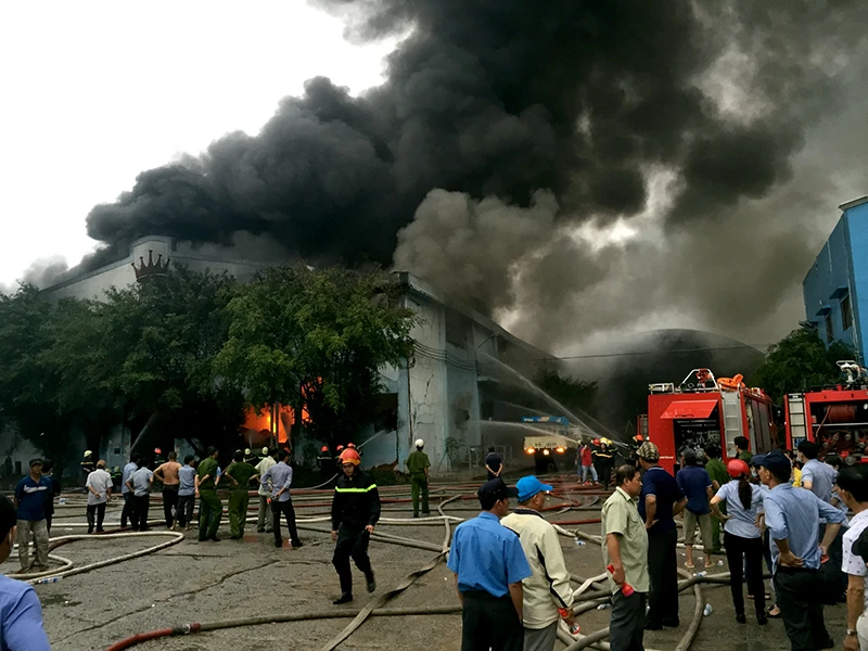 Vụ cháy ở Công ty Nệm Vạn Thành thiêu rụi khối tài sản hàng chục tỉ đồng. Ảnh: tư liệu