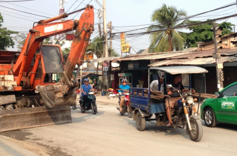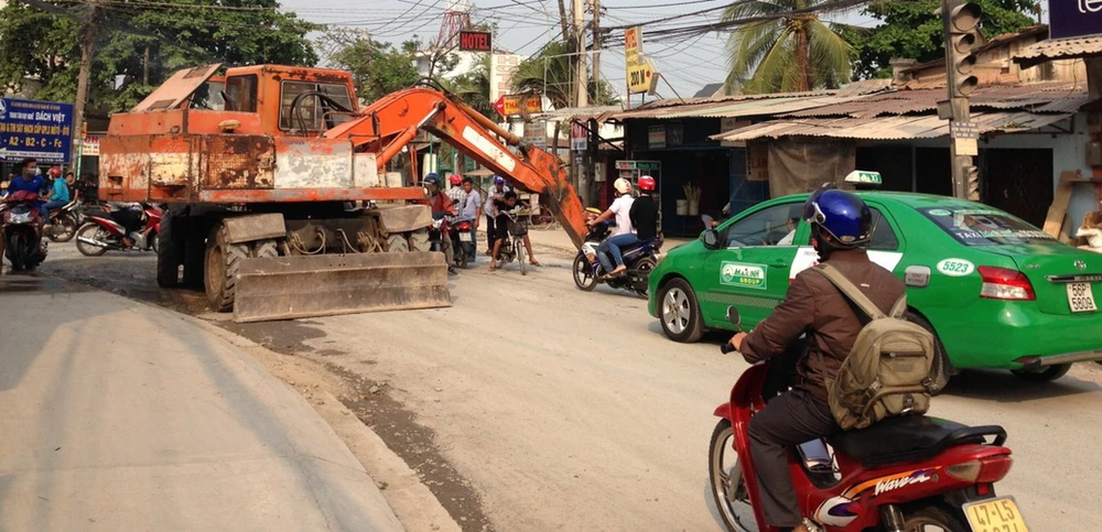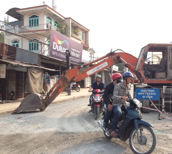 Theo một người dân thì tình trạng này đã diễn ra từ sáng đến giờ vì họ không cho xe lớn qua. Mặc dù vậy nhưng nhìn rất nguy hiểm.Khi phát hiện có người chụp hình thì tài xế lên xe dời trục múc va lái xe đi nơi khác và khoảng 10 phút sau lái xe cho trở lại vị trí chận như cũ. Hình ảnh chận đường đi "sáng tạo" này có một không hai.