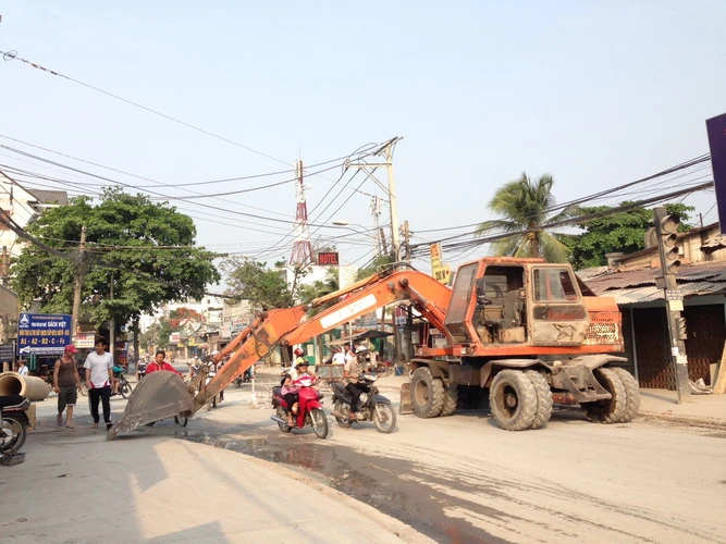 Đơn vị thi công "dẹp" cẩu khi thấy có người chụp hình