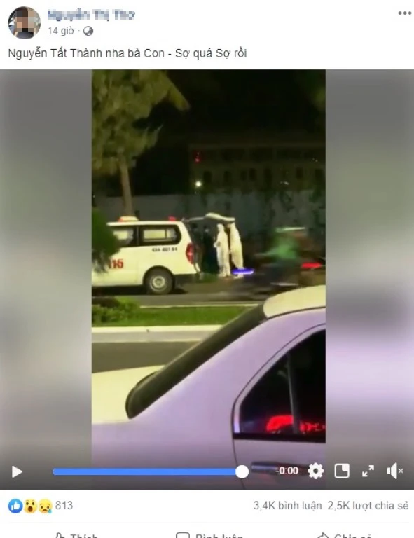 Tuy nhiên, một tài khoản Facebook cá nhân chuyên quảng cáo bán khẩu trang trên mạng lại đăng đoạn clip dài 8 giây chỉ có hình ảnh xe cấp cứu đứng trên đường và hai nhân viên y tế. Chủ nhân tài khoản này đã viết nội dung rằng: “Nguyễn Tất Thành nha bà Con - Sợ quá Sợ rồi”.