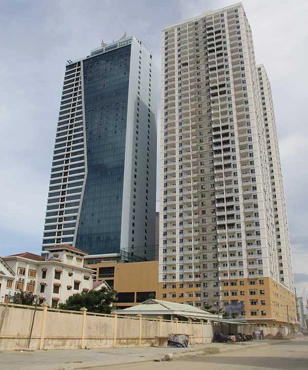 Tổ hợp khách sạn, căn hộ cao cấp của Mường Thanh xây dựng trái phép 104 căn hộ, bất chấp lệnh dừng thi công của Sở Xây dựng TP Đà Nẵng. Ảnh: NGUYỄN TRI
