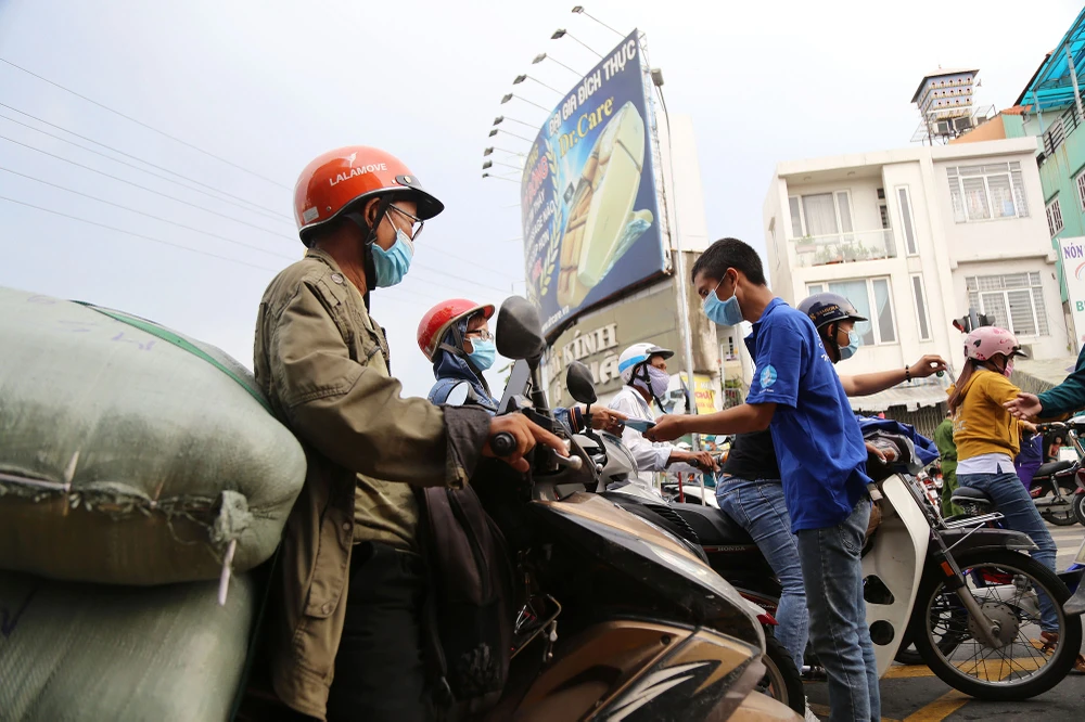 Bên cạnh các cán bộ, chiến sẽ trực chiến tại các chốt, lực lượng thanh niên tình nguyện cũng tham gia hỗ trợ người dân hết mình. Anh Nguyễn Đức Minh (tài xế, thành viên đội SOS Hướng Nam) cho biết, anh vừa xong hỗ trợ tại chốt cầu Trường Đai từ 6 giờ đến 14 giờ liền chạy sang chốt Phạm Văn Đồng – Phan Văn Trị để tiếp tục hỗ trợ từ 14 giờ đến 22 giờ đêm.