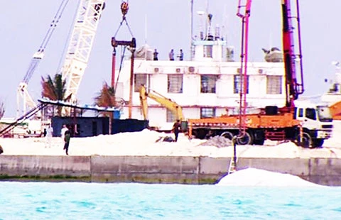 Ảnh trên: TQ đang ồ ạt xây dựng trái phép trên đảo Gạc Ma (cưỡng chiếm trái phép của Việt Nam). Ảnh: Internet