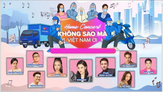 Cũng trong đêm nhạc tại gia ngày 21-8, sàn TMĐT này đã công bố MV ca nhạc Không sao mà, Việt Nam ơi kết hợp với nhiều nghệ sĩ hàng đầu hiện nay.