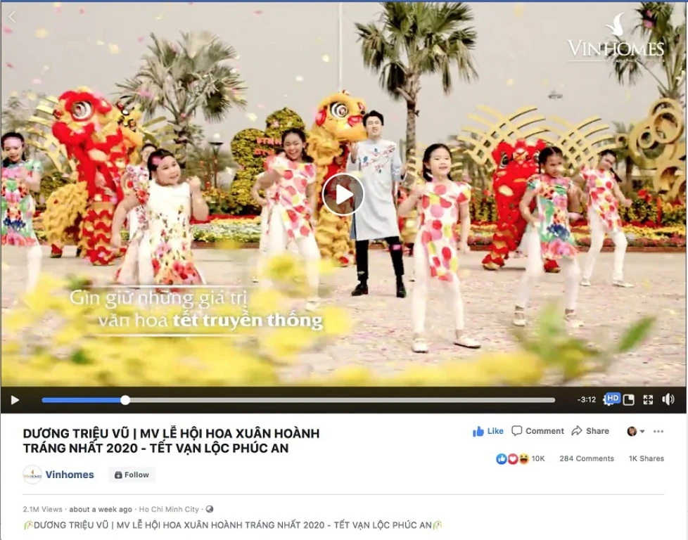 Tính riêng fanpage của Vinhomes đã có tới hơn 2 triệu lượt view, gần 10.000 reaction, hơn 1.000 chia sẻ.