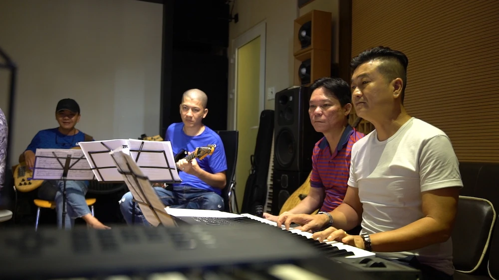 Chính vì thế, MV đan xen câu chuyện nhật ký cách ly là hình ảnh năm chàng nhạc sĩ mộc mạc trong phòng thu.
