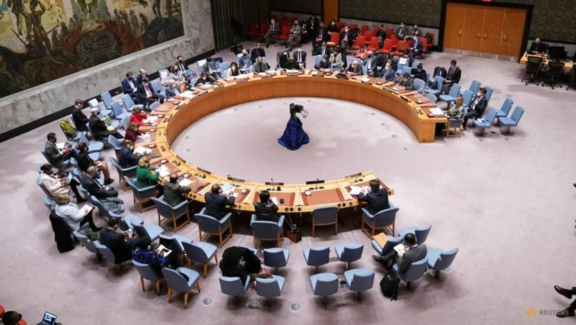 Hội đồng Bảo an Liên Hợp Quốc họp khẩn tại New York, Mỹ, sau khi Quốc hội Nga thông qua việc điều quân đến vùng Donbass. Ảnh: REUTERS