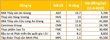 Thống kê giao dịch cổ phiếu thuỷ sản phiên 10-4 đến 11-4-2019