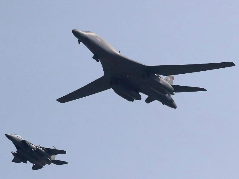Máy bay ném bom B-1B của Không quân Mỹ bay gần căn cứ không quân Osan ở Pyeongtaek, Hàn Quốc. Ảnh: REUTERS
