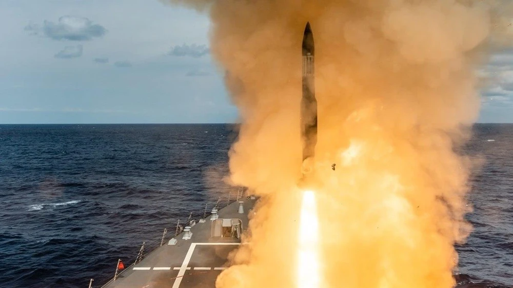 Tên lửa SM-2 trong cuộc tập trận bắn đạn thật ngoài khơi bờ biển Virginia vào ngày 25 -3 năm 2019. Ảnh: US Navy