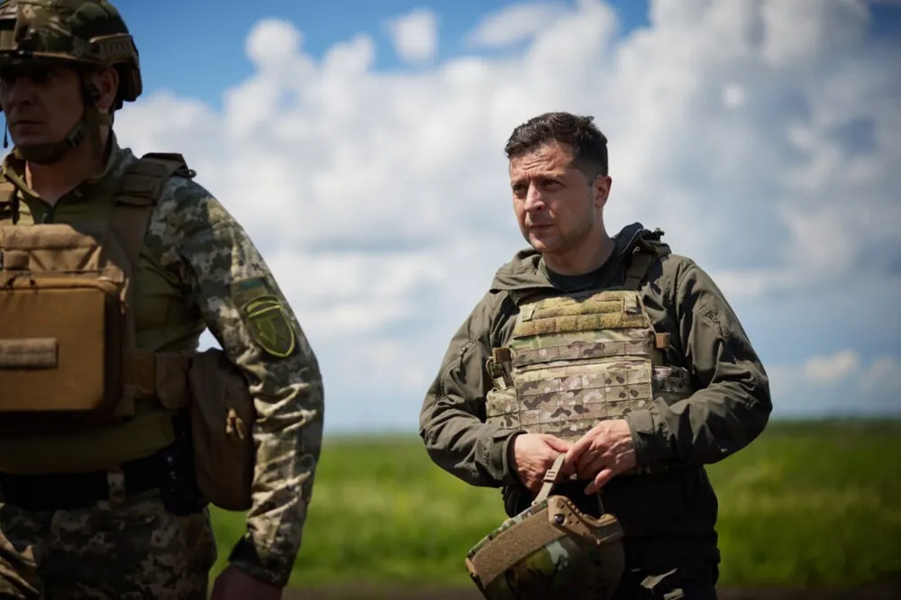 Tổng thống Ukraine Volodymyr Zelenskyy (phải) thăm chiến tuyến ở Donbass, miền đông Ukraine hồi tháng 6-2021. Ảnh: NBC