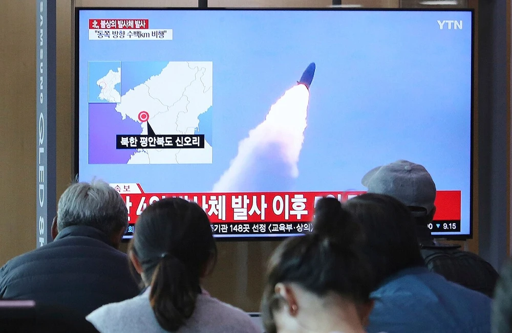 Người dân Hàn Quốc xem đoạn phim Triều Tiên phóng tên lửa trong một chương trình thời sự tại Ga Tàu ở Seoul ngày 9-5-2019. Ảnh: AP