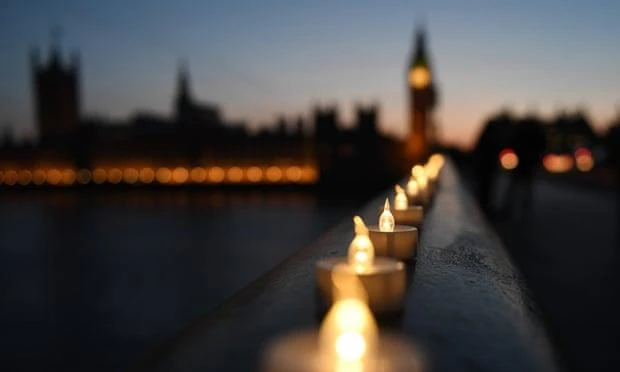Người dân cầu nguyện cho các nạn nhân vụ tấn công khủng bố cầu Westminster, London (Anh) năm 2017. Ảnh: EPA