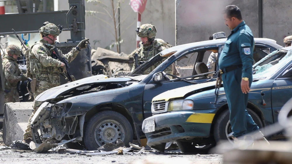 Hiện trường vụ đánh bom liều chết ở thủ đô Kabul ngày 5-9. Ảnh: AP