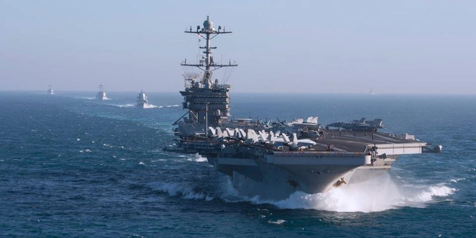 Tàu sân bay USS Harry S. Truman (CVN 75) và các tàu trong Nhóm tác chiến tàu sân bay Harry S. Truman (HSTCSG) đi qua Đại Tây Dương trong một cuộc tập trận vào ngày 16-2-2018. Ảnh: US NAVY
