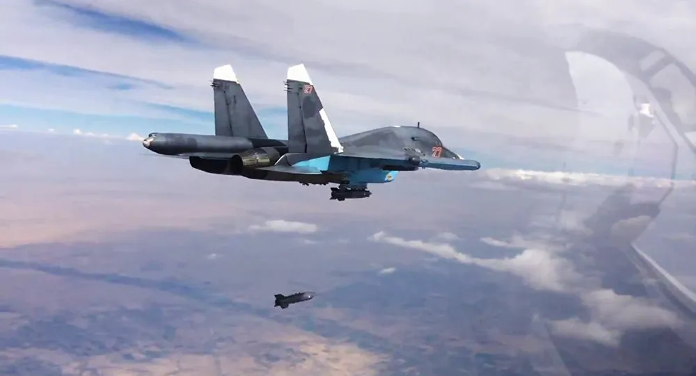 Chiến đấu cơ Su-34 của Nga không kích tại Syria. Ảnh: Bộ Quốc phòng Nga