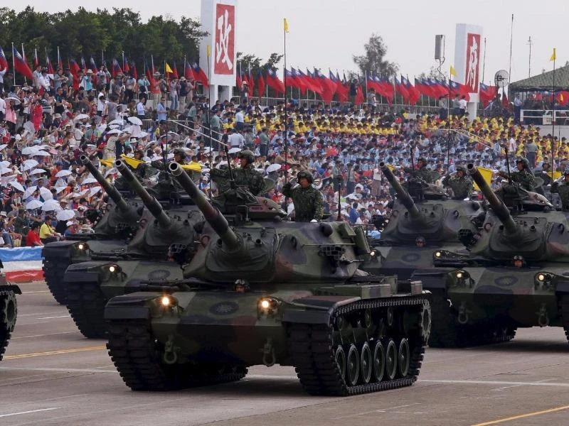 Quân đội Đài Loan sử dụng các xe tăng chiến đấu M60A3 do Mỹ chế tạo trong một cuộc diễu binh trước thềm tập trận Hán Quang hồi tháng 7-2015. Ảnh: REUTERS
