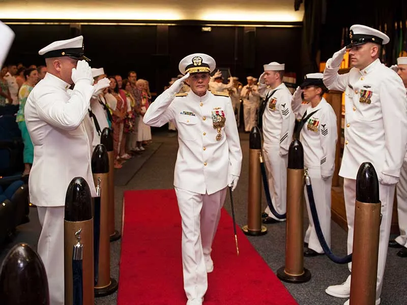 Tân chỉ huy Hạm đội 7, Chuẩn Đô đốc Phil Sawyer trong một sự kiện tại Hawaii. Ảnh: HẢI QUÂN MỸ
