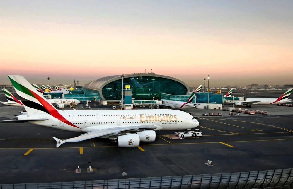 Một chiếc máy bay thuộc hãng hàng không UAE Emirates tại sân bay quốc tế Dubai Ảnh: AP