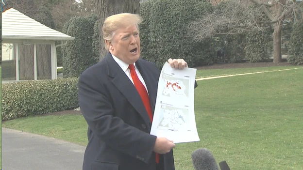 Ngay sau đó vào tháng 3, Tổng thống Trump xuất hiện tại bãi cỏ Nhà Trắng và cầm một tấm bản đồ thể hiện những địa điểm bị IS chiếm đóng ở Syria.