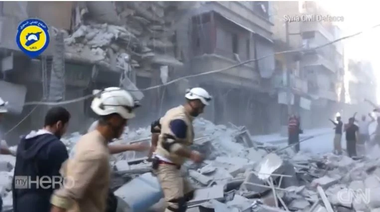 Những hình ảnh lao vào đống đổ nát của các nhân viên cứu hộ "Mũ bảo hiểm trắng" (SCD). Ảnh: CNN
