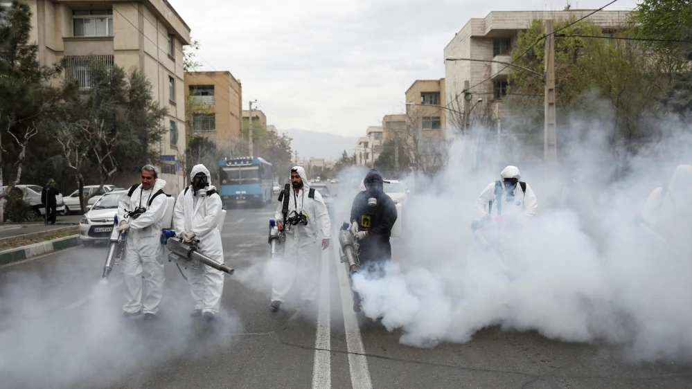 Xịt khử trùng ngăn COVID-19 trên các con đường ở Tehran (Iran). Ảnh: REUTERS