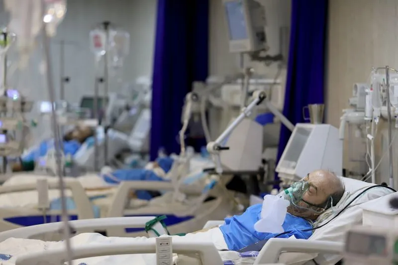 Bệnh nhân nhiễm COVID-19 nằm trên giường tại phòng chăm sóc đặc biệt của một bệnh viện ở Tehran, ngày 16-12. Ảnh: REUTERS