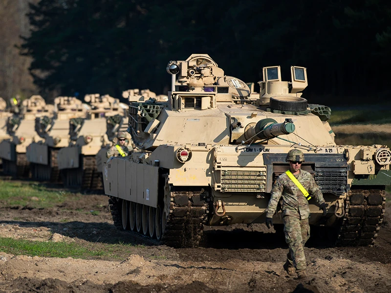 Xe tăng của Mỹ khi còn hoạt động ở Syria. (Ảnh chụp tháng 8-2019) Ảnh: REUTERS