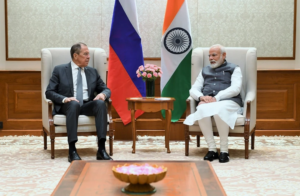Ngoại trưởng Nga Sergey Lavrov hội kiến Thủ tướng Ấn Độ Narendra Modi ngày 15-1. Ảnh: CHÍNH PHỦ ẤN ĐỘ